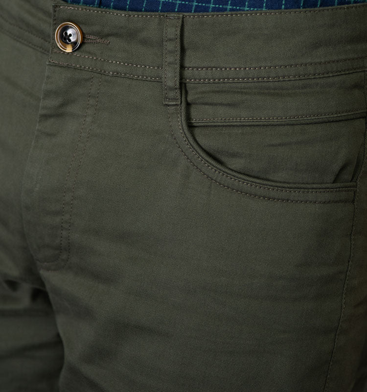 Presenting a mid-weight, stretch enhanced companion in that perfect muted olive that goes with everything. Simple, yet distinguished with subtle details and composed in a modern slim fit that sits perfectly atop it all: sneakers to oxfords. These are chinos you'll want to pull out from your wardrobe and wear everyday.
